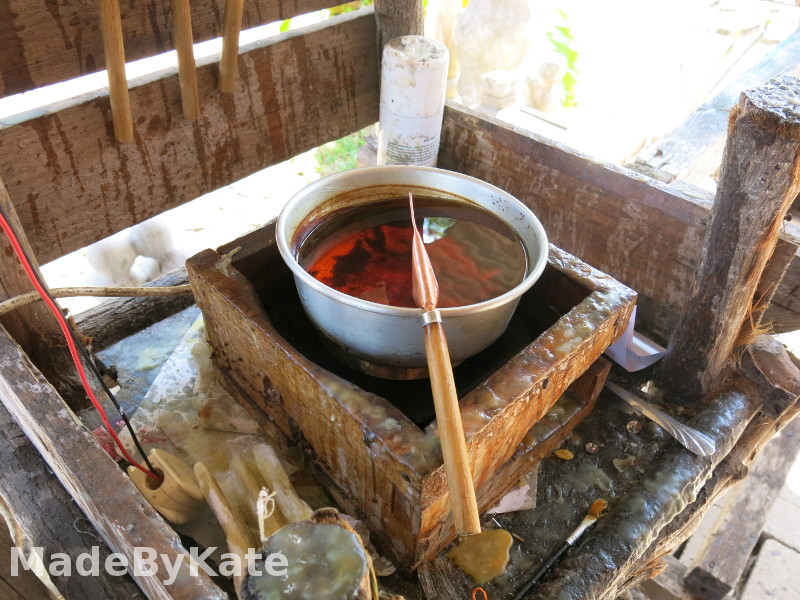 A questo punto viene passato un fissante sul tessuto e poi lavato in acqua bollente per eliminare la cera…..il gioco è fatto!