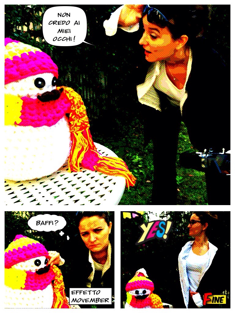 Il fumetto è fantastico, che allegria che colore che vivacità. Non sapevo cosa era Movember, mio marito sta facendosi crescere anche la barba vale lo stesso? Scherzi a parte, ho imparato qualcosa. Mi piacciono molto i tuoi baffi, ma c’è anche il tutorial? Non mi ricordo più la mia password per entrare in Raverly. Complimenti ancora per questa trovata di “ingigantimento”, davvero originale.