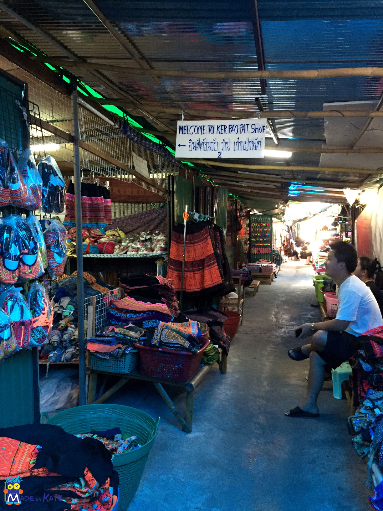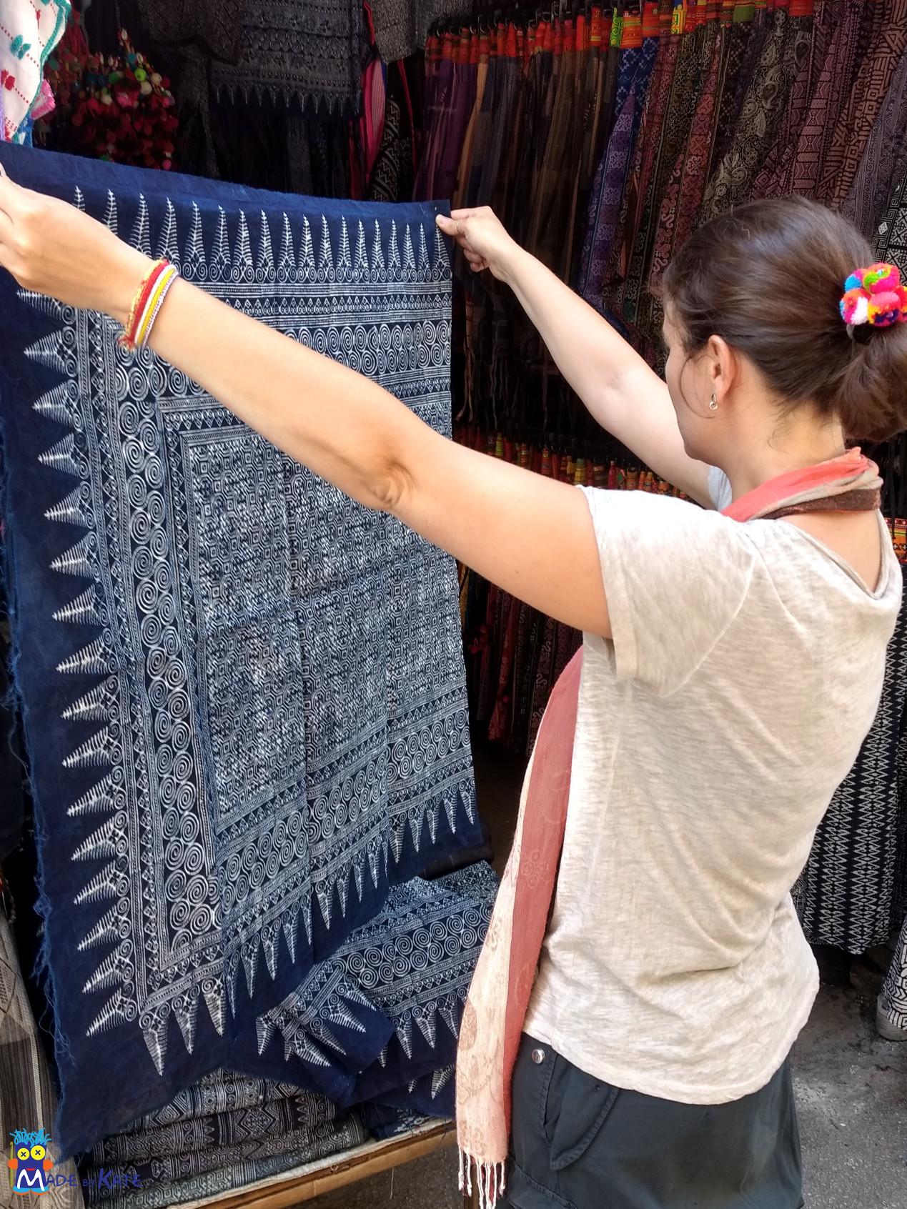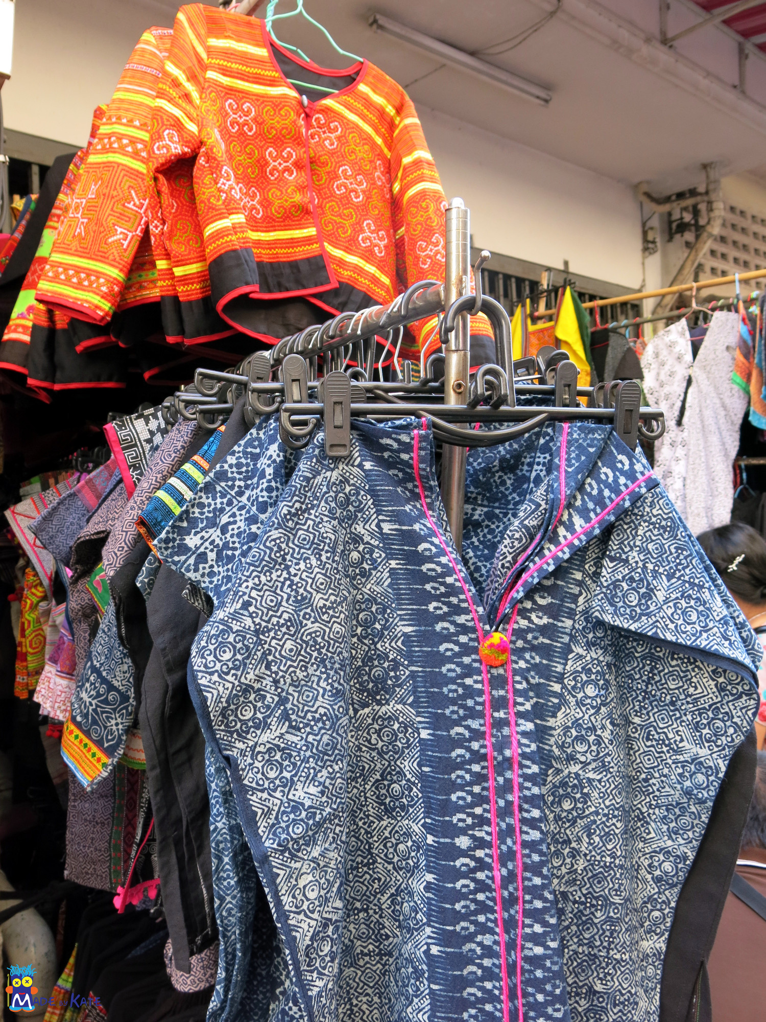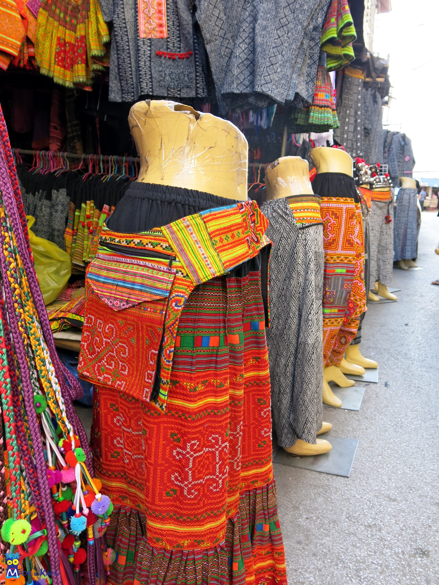 L’artigianato tradizionale prodotto dai Hmong va dalle stoffe tinte con indaco a accessori di ogni tipo ricoperti da fitti ricami a punto croce, e tanti tantissimi pompon multicolori (mi ricorda qualcosa che stiamo organizzando con i Magliuomini). Il mercato vale la visita, nonostante sia caldo, caotico e pieno zeppo di roba. A differenza del resto del mercato che lo osptia qui si riesce a trovare vero artigianto e non chincaglierie per turisti.