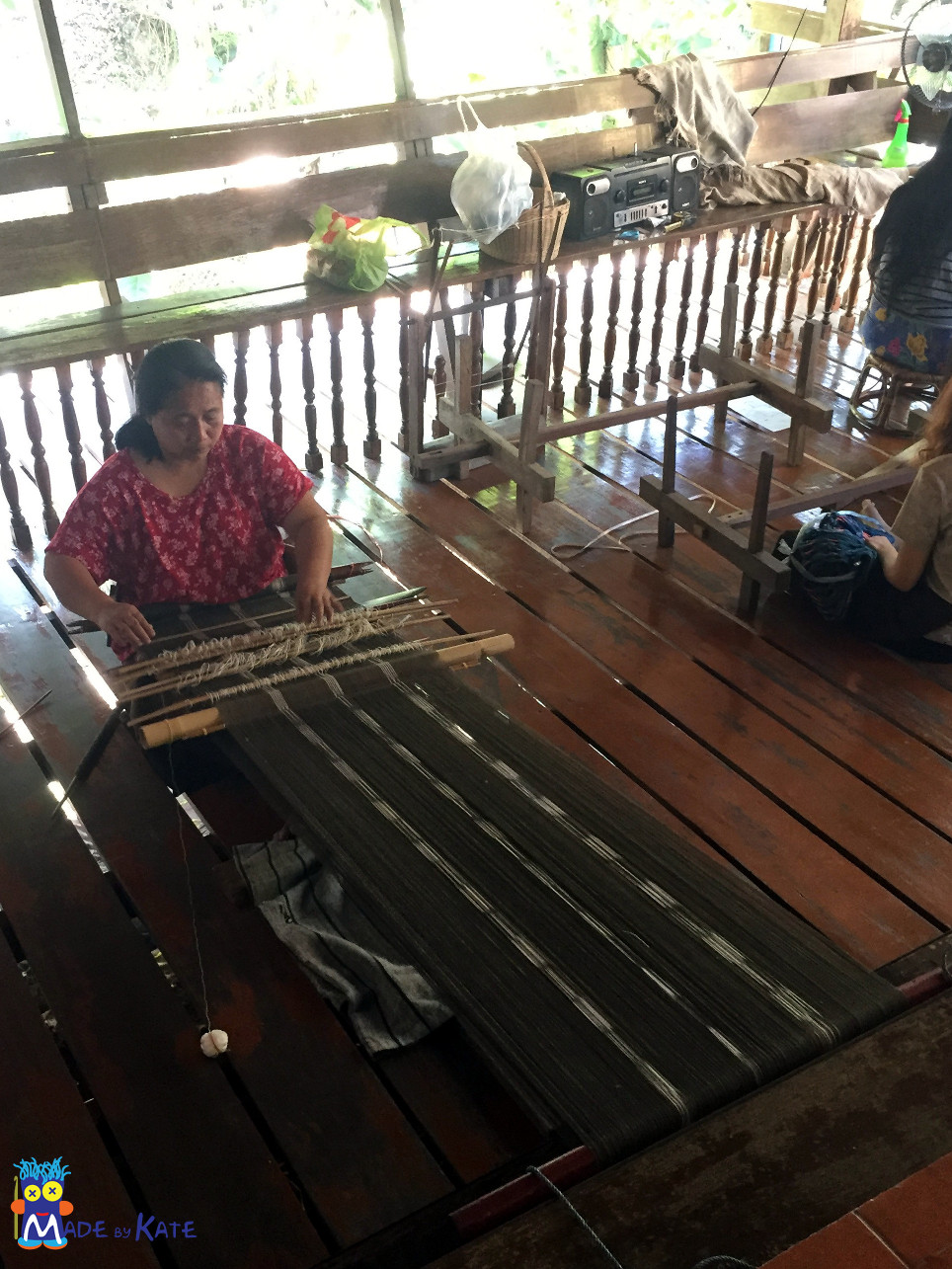Un po’ fuori città si trova un laboratorio di tessitura e tintura che si occupa di aiutare i gruppi etnici locali, preservare le tradizioni tessili e vendere artigiantao ad un prezzo ecuo. Non era possibile fare foto all’interno dello shop, ma mi hanno permesso di girellare intorno al laboratorio insieme al tipo Strano. Ho incontrato una signora che tesseva con un telaio legato in vita, non ne avevo mai visto uno, è stato davvero interessante vederla a lavoro.