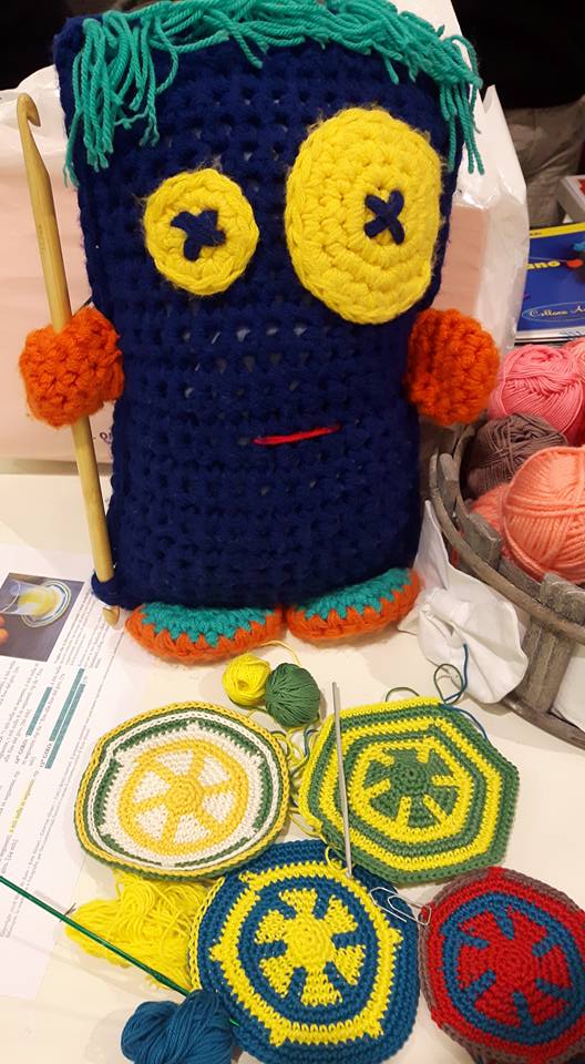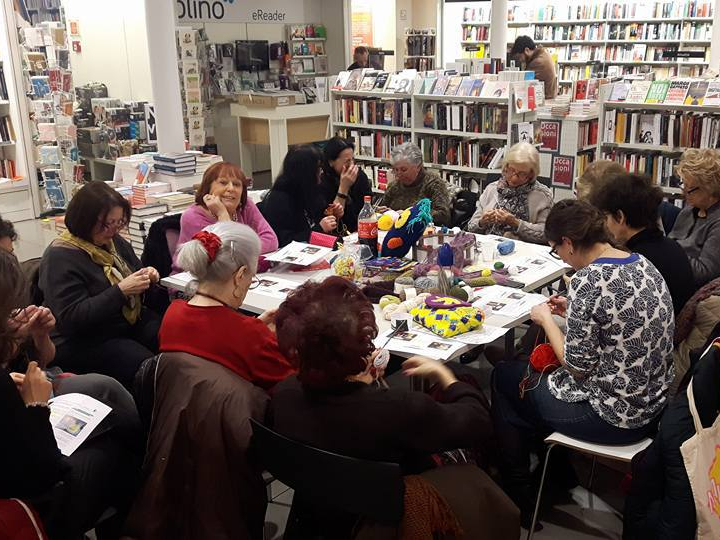 Super emozionata, agitata e un po’ incredula, ho aperto la stagione 2017/2018 dei knit caffe alla libreria IBS+Libraccio di Firenze con la presentazione del mio libro, “I Balocchi del Tipo Strano”. Da allora ho organizzato un laboratorio di uncinetto tutti i primi Lunedì del mese, è stato impegnativo inventarsi sempre qualcosa di nuovo, ma divertentissimo! Frequento il knit caffe della libreria fiorentina da anni, per me è un onore insegnare a questa bella banda di amiche e fare nuove conoscenze. Quest’anno è venuta anche mia mamma, indovina qual’è?!?!